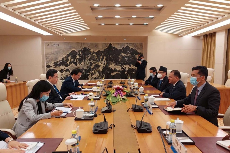 परराष्ट्रसचिव भरतराज पौड्याल र चिनियाँ परराष्ट्रमन्त्री छिन काङबीच बेइजिङमा भेटवार्ता भएको छ।