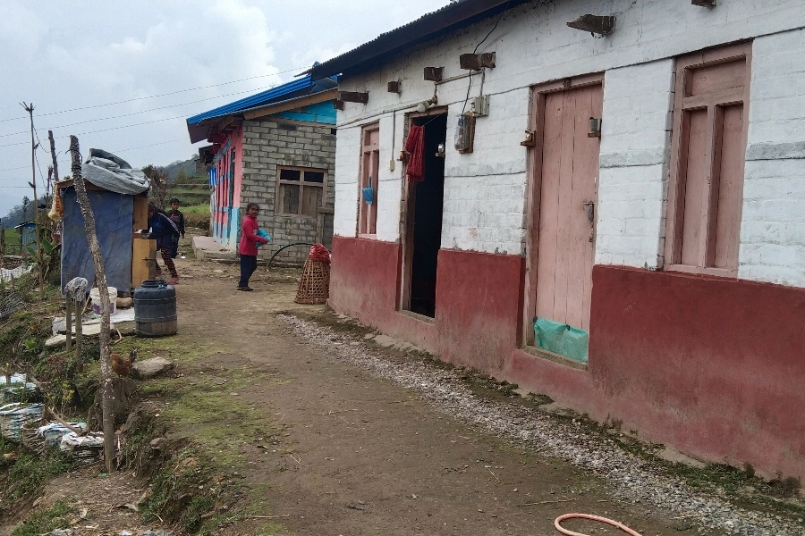 सरकारले ‘नमुना बस्ती’ योजना अन्तर्गत एकैनासका १० घर वटा घर बनाइदिएको छ। सबै घरमा औसत पाँच जनाको परिवार बस्छन्। दुई कोठे घर जोडेर बनाइएका छन्। नमुना बस्तीको जग्गा र घरको एकमुष्ट लालपुर्जा छ। पुर्खौली घर भएको ठाउँमा गरीखाने जमिन पहिरोले बगाएको छ।