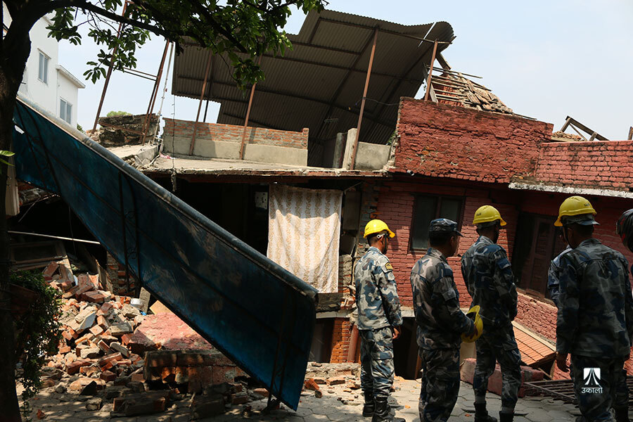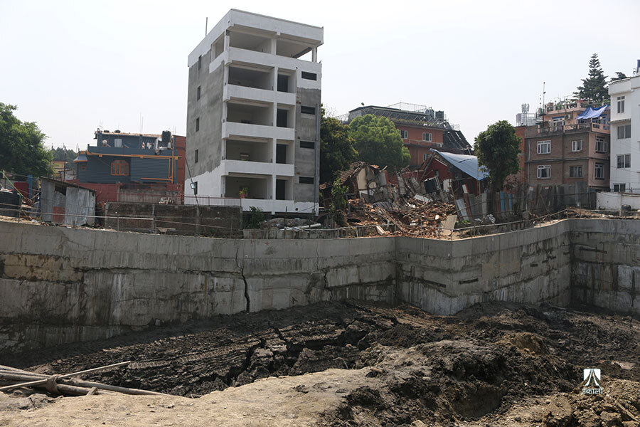 ललितपुरको बखुण्डोल हाइटमा निर्माणाधीन समिट अपार्टमेन्टसँगै जोडिएका घरहरू भासिएका छन्।
