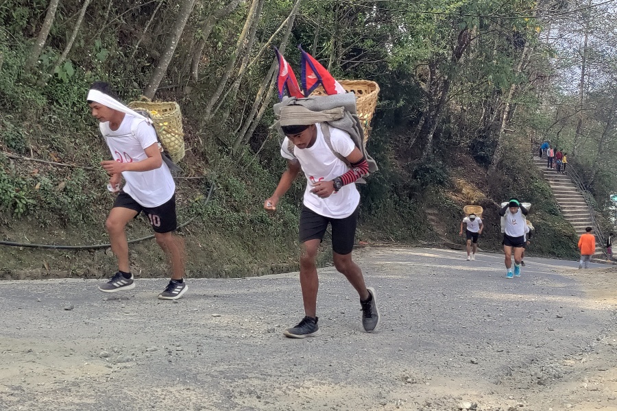 सदरमुकाम फुङलिङस्थित पुरानो बैंक लाइनबाट सुकेटारको सानो पाथीभरा मन्दिरसम्म सहभागीले १५ किलो बालुवा भरिएको डोको बोकेर दौडेर पूरा गरेका थिए।