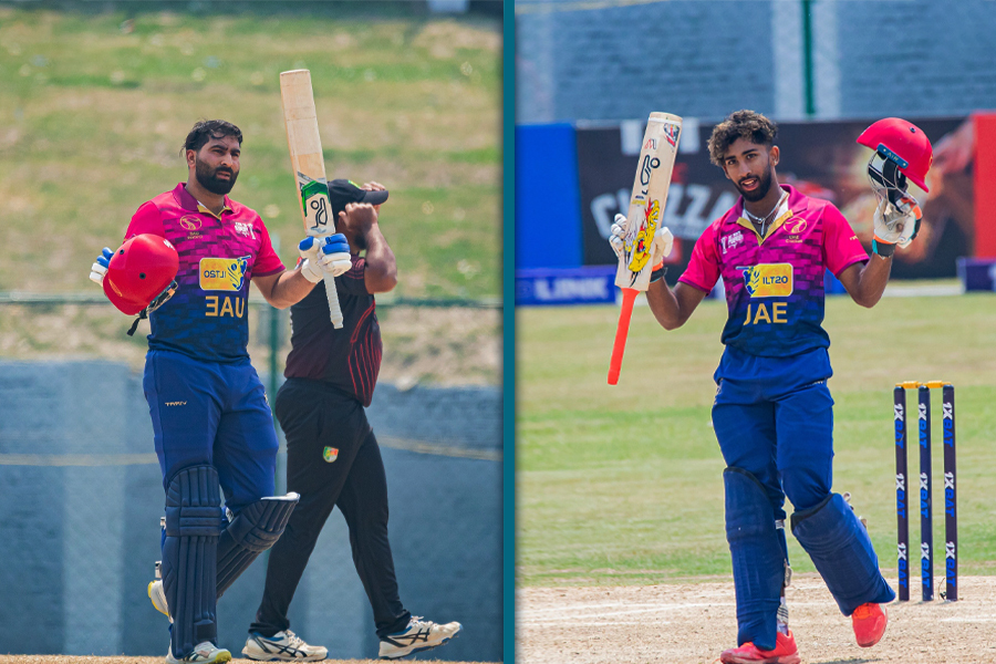यूएईका सन्चित शर्मा ८ बलमा २ चौकासहित १६ रन प्रहार गर्दै अविजित रहे। यता, वृत्य अरविन्दले १३३ बलमा १७ चौका र ७ छक्कासहित १७४ रन बनाए।