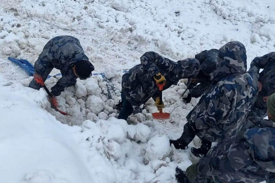 सशस्त्र प्रहरी बलको टोलीले मंगलबारदेखि बेपत्ताको खोजी गर्दै आएको छ। मंगलबार दिउँसो हिमपहिरो जाँदा यार्सागुम्बा संकलक बस्दै आएको त्रिपाल हिउँले पुरिएका थिए।
