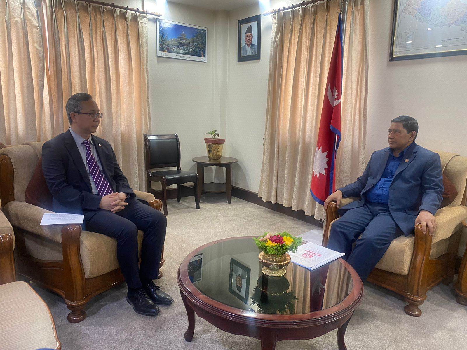 काठमाडौँ– उपप्रधानमन्त्री तथा गृहमन्त्री नारायणकाजी श्रेष्ठलाई चिनियाँ राजदूत चेन सङले शिष्टाचार भेट गरेका छन्।