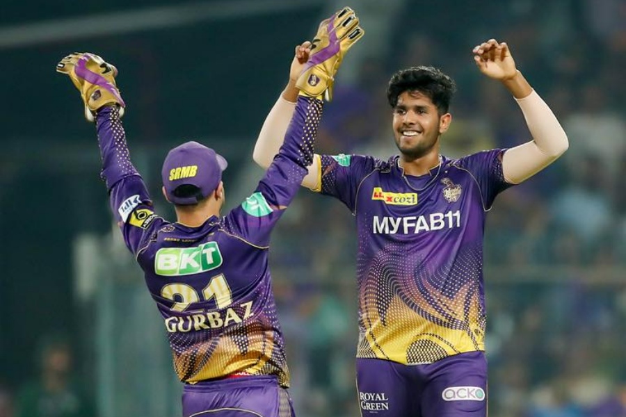 कोलकत्ताका वरुण चक्रवतीले ३ तथा हर्षित राणाले २ विकेट लिए।