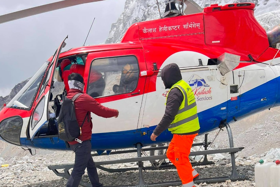 सगरमाथा आरोहणका क्रममा क्याम्प २ बाट माथि उक्लिँदै गर्दा स्वास्थ्यमा समस्या देखिएपछि एक शेर्पालाई हेलिकप्टरमार्फत उद्धार गरी काठमाडौँ ल्याइएको छ।