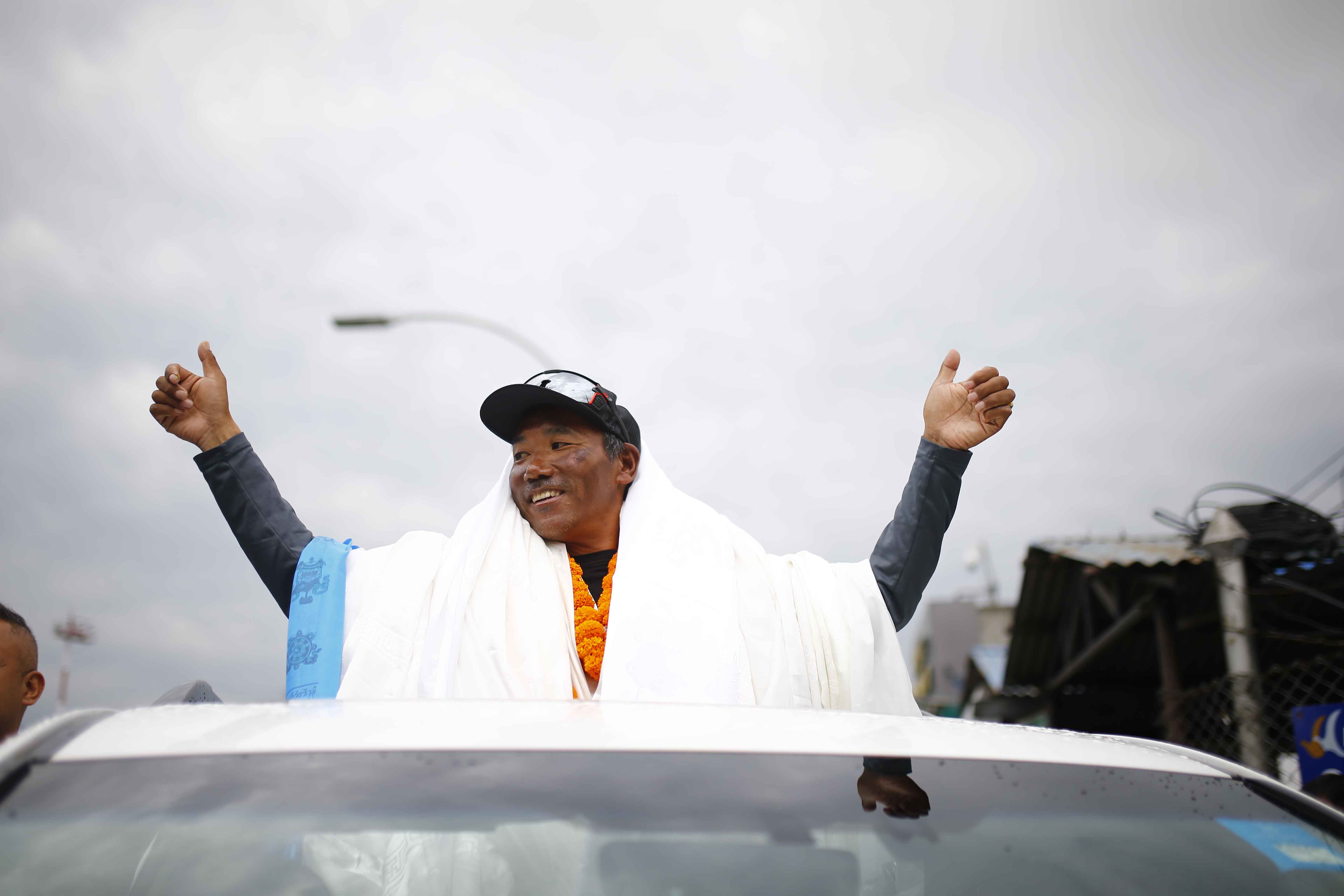 लुक्लाबाट अपराह्न काठमाडौँ आइपुगेका कीर्तिमान आरोही शेर्पालाई त्रिभुवन अन्तर्राष्ट्रिय विमानस्थलको आन्तरिक टर्मिनल भवन परिसरमा स्वागत गरिएको हो। उनलाई पर्वतारोही, पर्यटन व्यवसायीलगायतले स्वागत गरेका थिए।