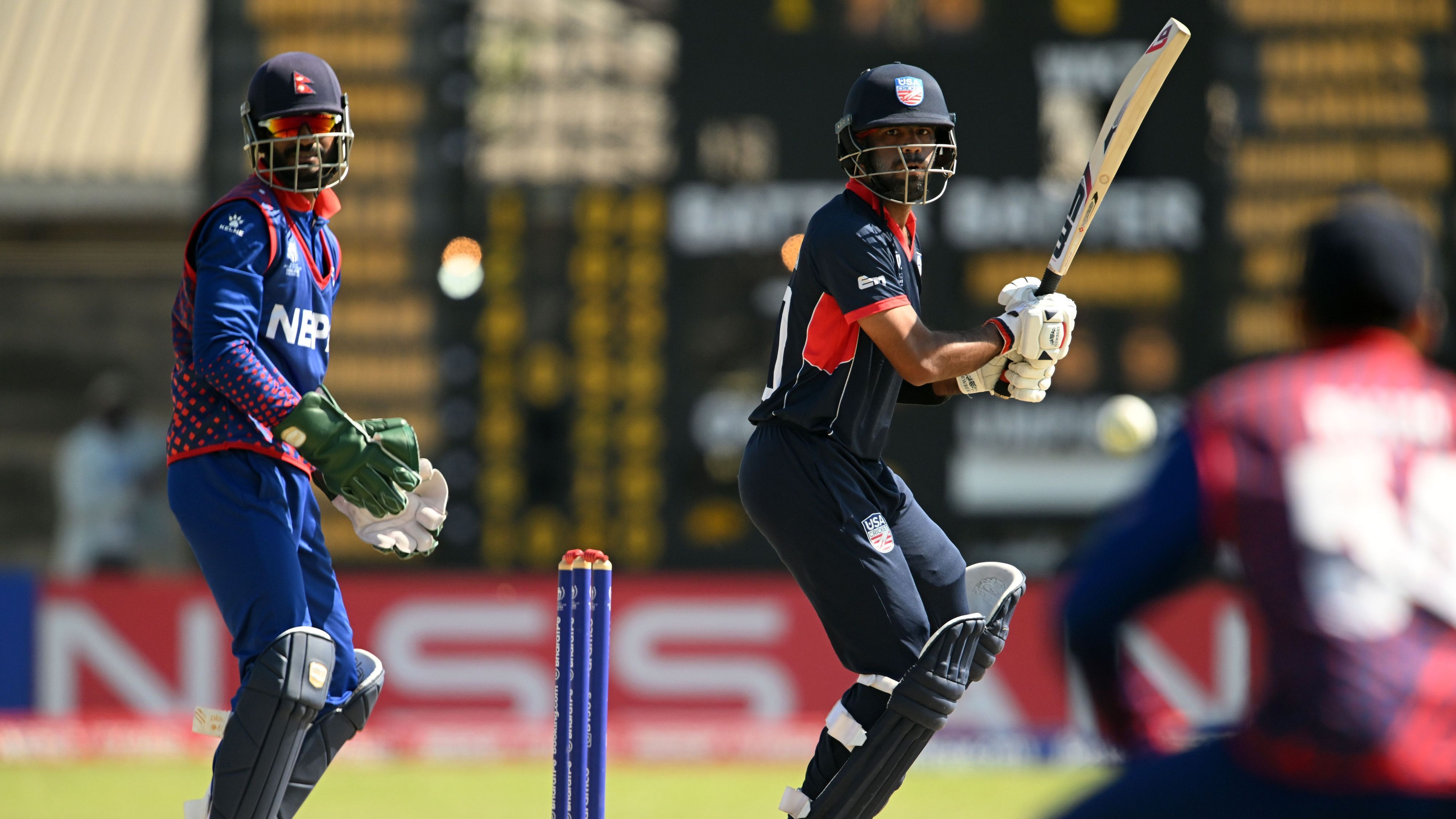 जिम्बावेस्थित ताकशिन्गा स्पोर्ट्स क्लबमा टस जितेर नेपालले पहिला बलिङ रोजेको थियो। ब्याटिङमा उत्रिएको अमेरिकाले ४९ ओभरमा सबै विकेट गुमाउँदै २०७ रन बनायो।