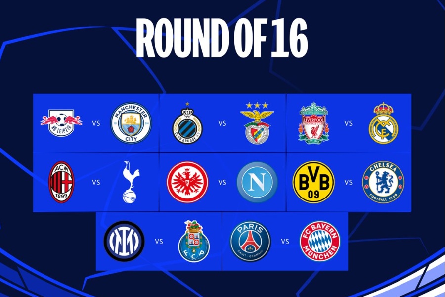 यूईएफए च्याम्पियन्स लिग फुटबलअन्तर्गत राउन्ड अफ १६ को ‘ड्र’ सार्वजनिक भएको छ। स्विटजरल्यान्डको न्योनस्थित युरोपेली फुटबलको मुख्यालयमा सोमबार ‘ड्र’ सार्वजनिक गरिएको हो।