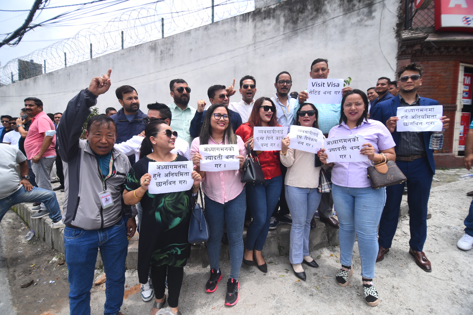 आन्दोलनकारीहरूले अध्यागमनमा हुने अनियमितता छानबिन गर्, अध्यागमनबाट श्रमिक फर्काउने कार्य बन्द गर्, वैदेशिक रोजगारीमा जाने श्रमिकलाई दुःख दिने काम बन्द गर्, भिजिट भिसामा हुने सेटिङ बन्द गर्, अध्यागमनको ज्यादती बन्द गर्, अध्यागमनका महानिर्देशक राजीनामा दे, व्यवसायीलाई दुःख दिने कार्य बन्द गर् लगायतका प्लेकार्ड बोकेर नारा लगाउँदै विरोध प्रदर्शन गरेका थिए।