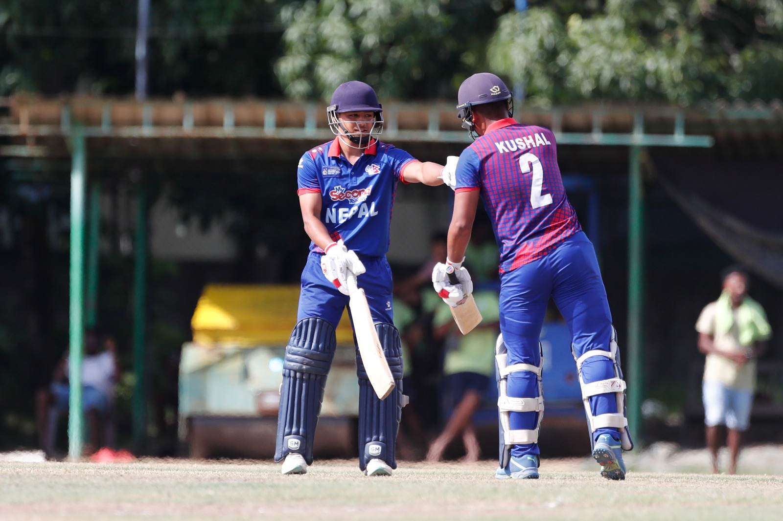 त्यसअघि ब्लूमफिल्ड क्रिकेट क्लबमा टस जितेर पहिला ब्याटिङ थालेको नेपालले ४३.४ ओभरमा सबै विकेट गुमाउँदै १९७ रन बनाएको थियो। नेपालका ओपनर अर्जुन साउदले सर्वाधिक ७९ रन बनाए। उनले ११३ बलमा ४ चौका र ३ छक्का प्रहार गरे।