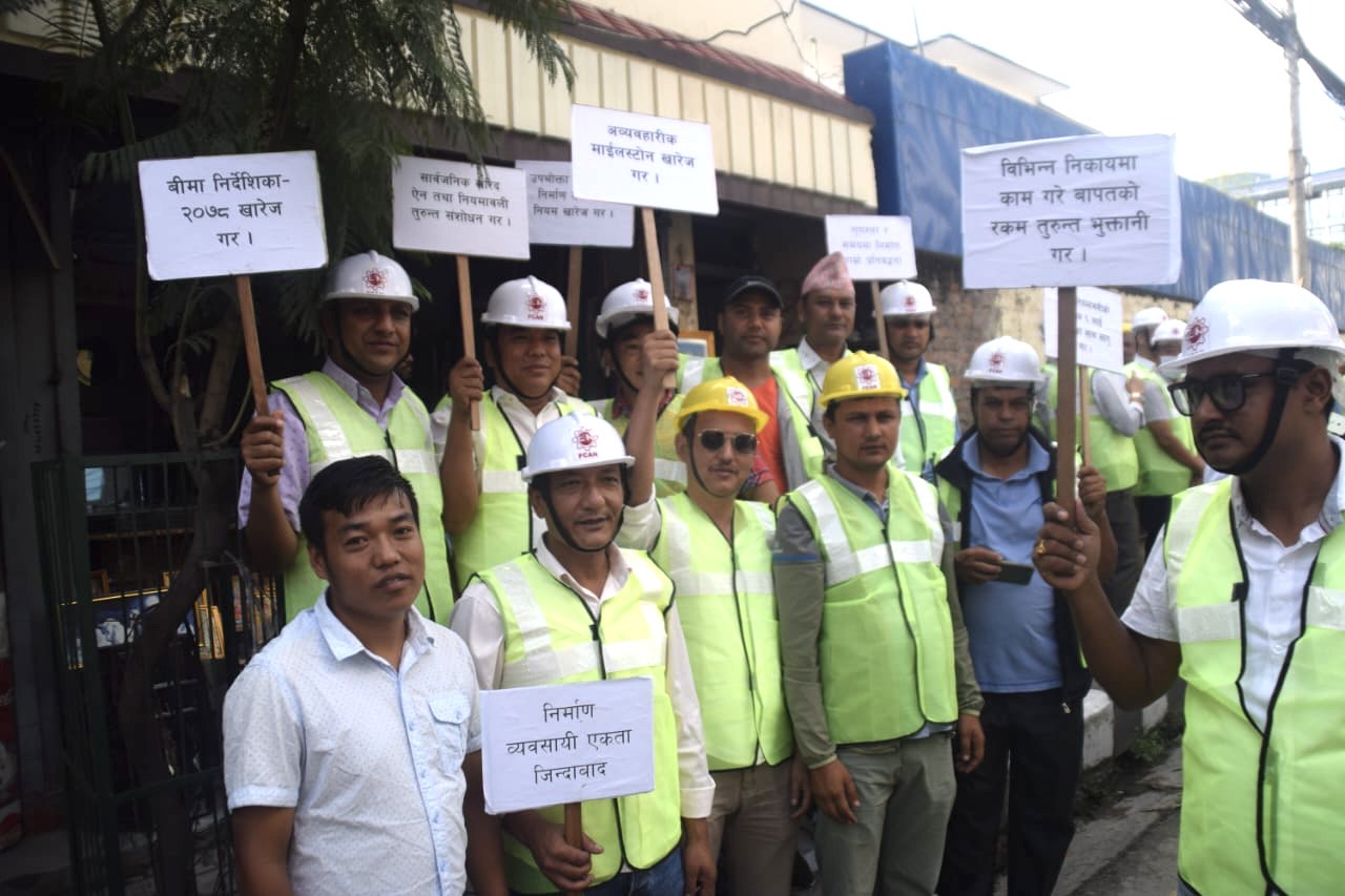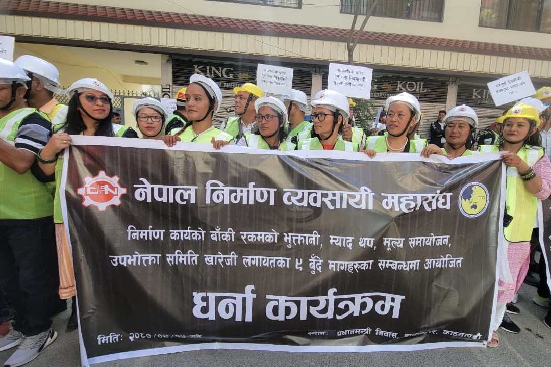 निर्माण व्यवसायी महासंघको अगुवाइमा प्रदर्शन भएको हो। सरकारले ठूलो रकम भुक्तानी रोक्दा मजदुरलाई दिन नसकेको र अन्य व्यवहारिक समस्या परेको भन्दै उनीहरूले विरोध जनाएका छन्।