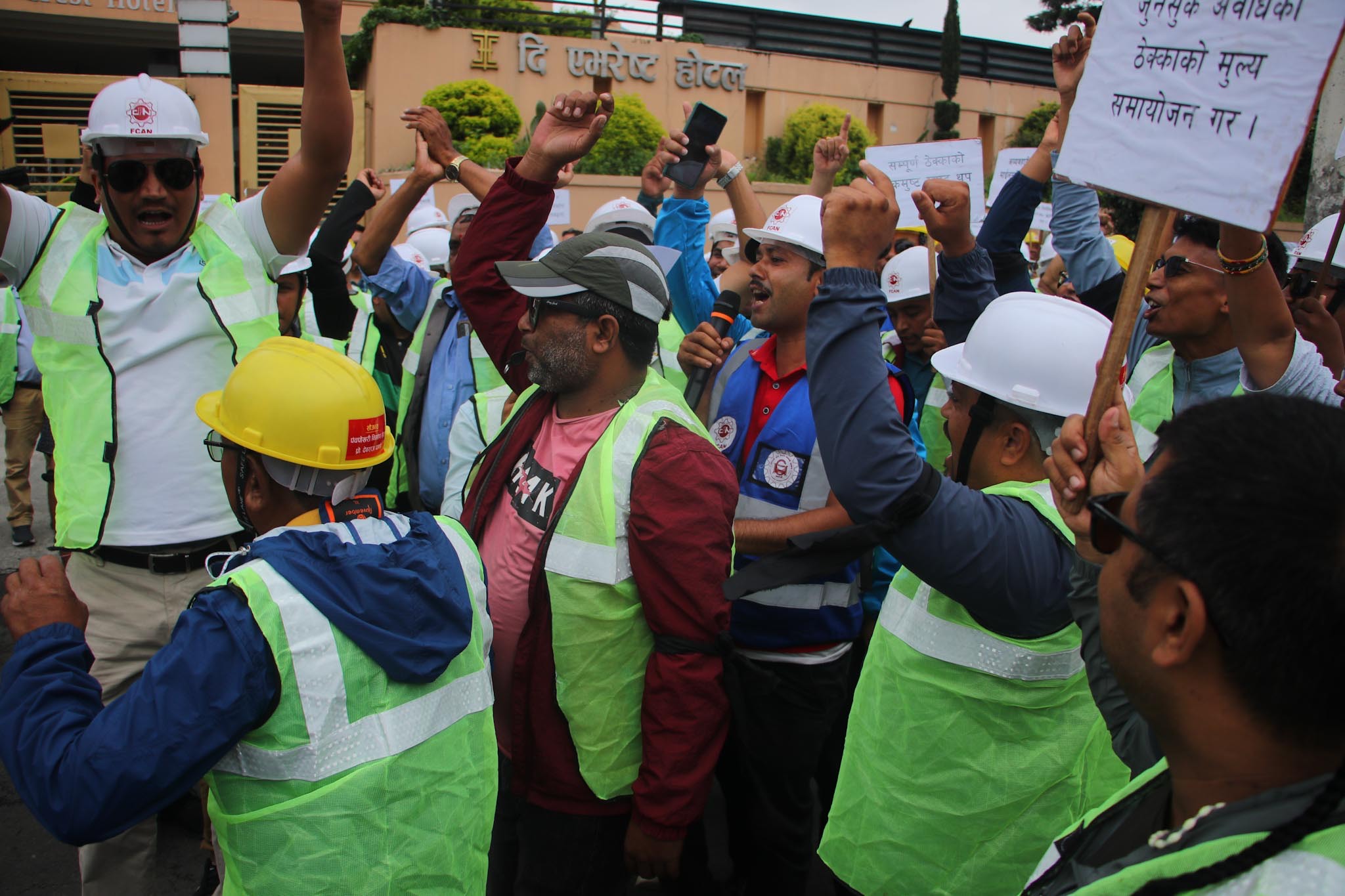 सरकारले असार मसान्त समाप्त भइसक्दा पनि सम्झौताअनुसार रकम नदिएको भन्दै निर्माण व्यवसायी आन्दोलनमा छन्। ठूलो रकम भुक्तान नगरिएको र व्यवसायीलाई मर्का पर्ने गरी म्याद थप सम्बन्धी निर्णय भएको भन्दै विरोध गरिरहेका छन्।