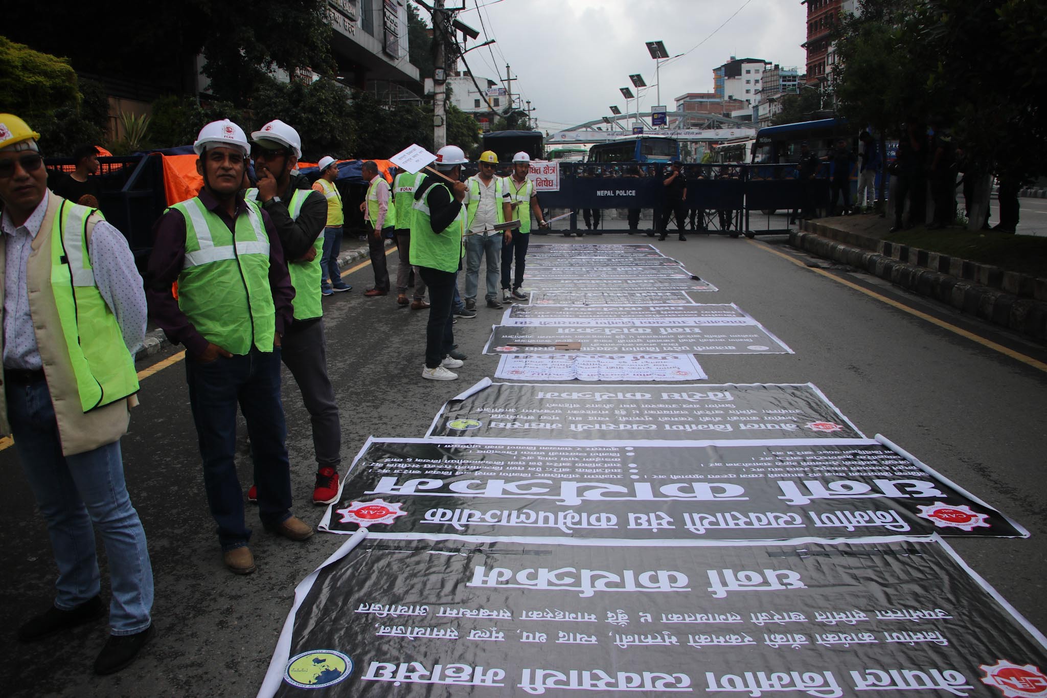 व्यवसायीहरूले महासंघको कार्यालय बिजुलीबजारदेखि बानेश्वरसम्म प्रदर्शन गरेका हुन्। उनीहरू सेफ्टी हेल्मेट र प्ला-कार्ड बोकेर प्रदर्शनमा सहभागी भएका थिए।
