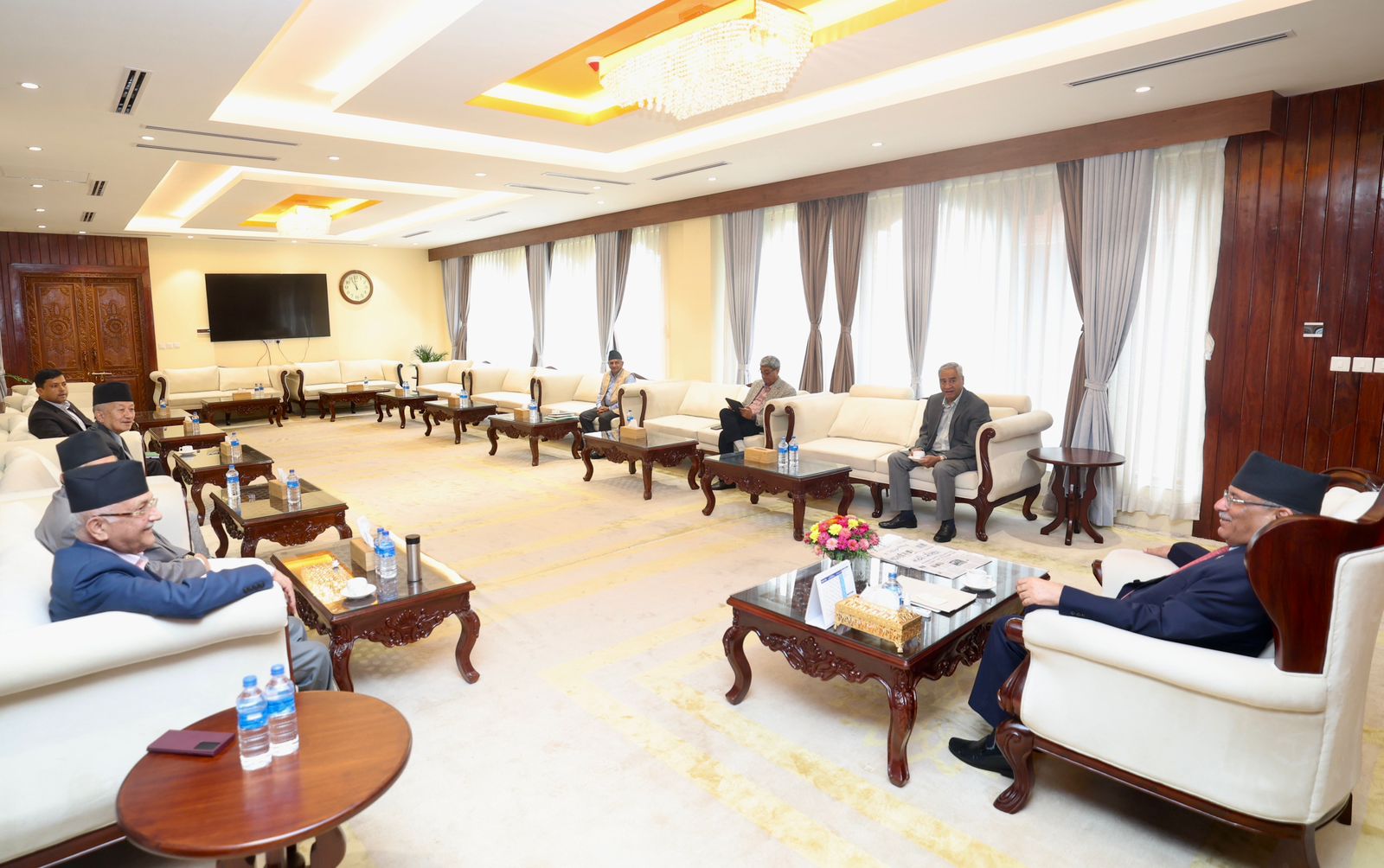बैठकमा प्रधानमन्त्री पुष्पकमल दाहाल ‘प्रचण्ड’, सभामुख देवराज घिमिरे, नेपाली कांग्रेसका सभापति शेरबहादुर देउवा, एमालेका अध्यक्ष केपी शर्मा ओलीसहित तीन दलका प्रमुख सचेतकहरू उपस्थित थिए।