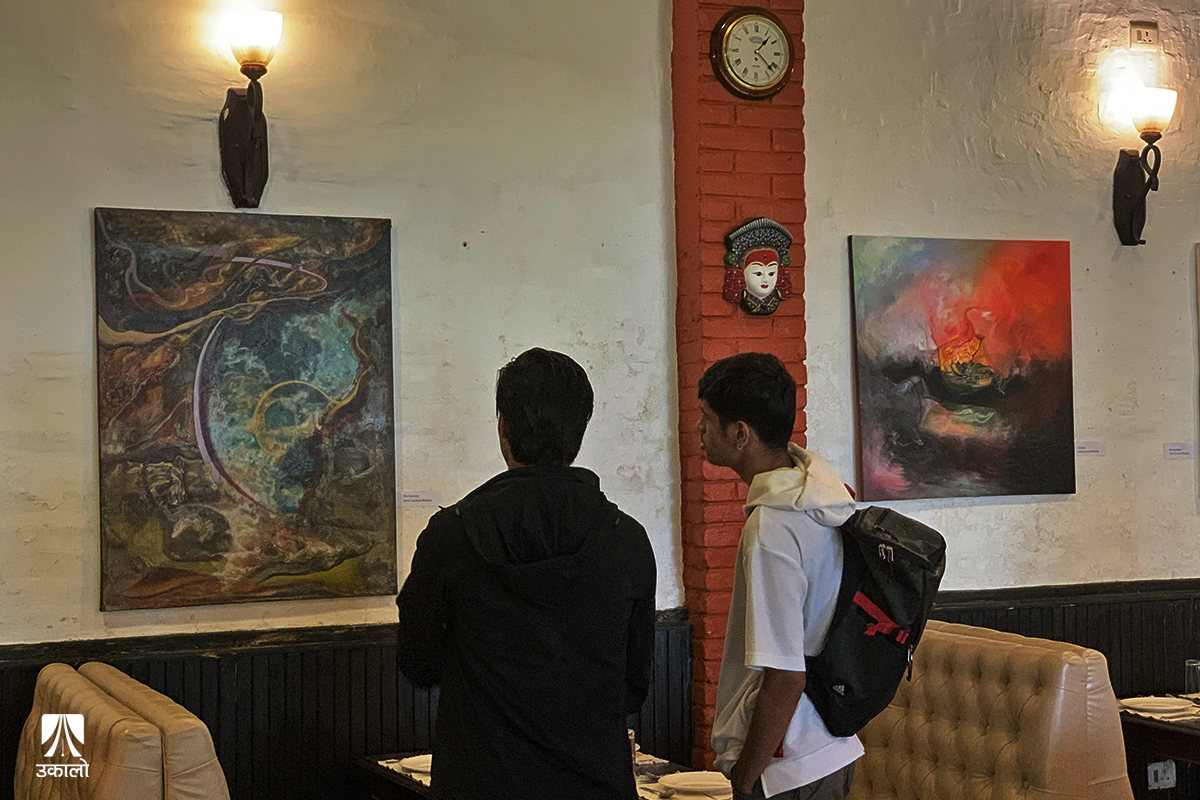 कलालाई व्यक्तिपिच्छे आफ्नै तरिकाले बुझ्नु पर्ने उनी बताउँछन्। प्रदर्शनीमा उनको ४ वटा कलाकृति राखिएका छन्।