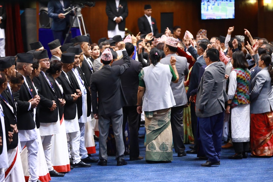 सभामुख देवराज घिमिरेले एमाले सांसद ज्वालाकुमारी साहलाई बोल्न समय दिएपछि सत्तापक्षका सांसद पनि उठेर विरोध गरेका थिए। सत्तापक्षका सांसदहरू उठेपछि एमालेका सांसदहरूले बेल घेराउ गर्दै सरकार र सत्तापक्षविरुद्ध नाराबाजी गरे।