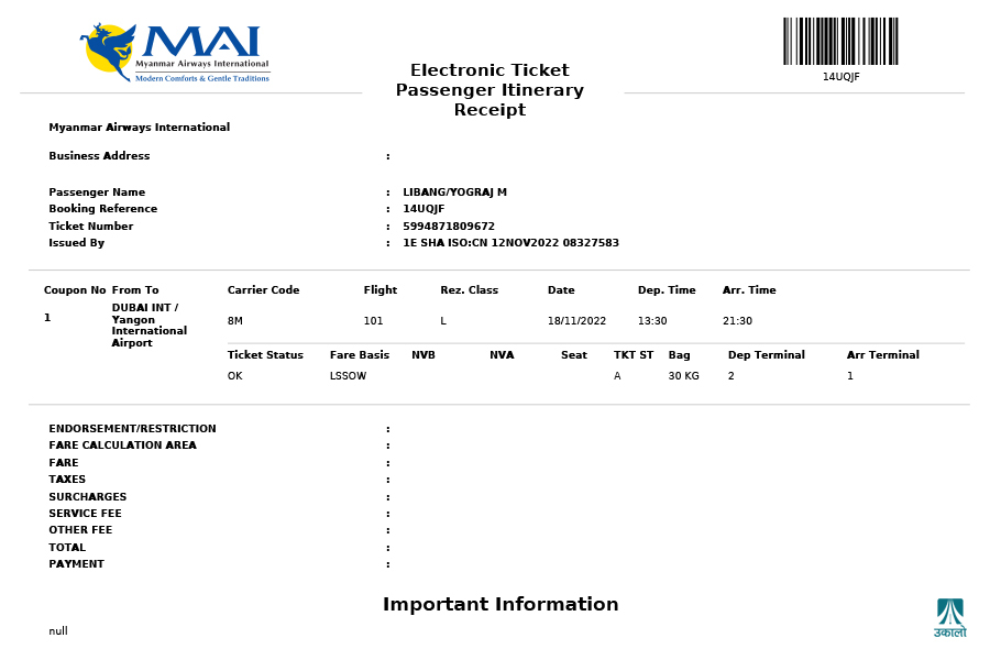 त्यसपछि दुबई छाडेर म्यान्मार जाने निधो गरेका योगराज विमानबाट नोभेम्बर १८ मा रंगुन पुगे। रंगुन विमानस्थलमा उनले सम्पर्क गर्ने व्यक्तिको नाम र सम्पर्क दुबईमै टिपाइएको थियो।