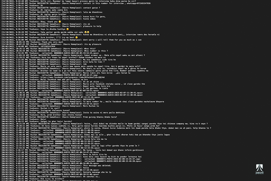 योसँगै रुचनमार्फत अनलाइनबाट सम्पर्कमा आएका दुबईमै रहेको बताउने अर्का व्यक्ति, चितवनका प्रेम गुरुङसँग पनि जोडिए, योगराज। रुचन र प्रेम दुवैले यसअघि पनि सूचना प्रविधि अध्ययन गरेका युवाहरूलाई म्यानमारसँगै कम्बोडिया, लाओस, भियतनामलगायतका देशमा पठाइसकेको बताए। रुचन आफैँ पनि दुबईमा बसेर क्रिप्टोकरेन्सीको काम गरिरहेको बताएपछि योगराजको मनभित्र उब्जिएको शंका केही हदसम्म हट्यो।
